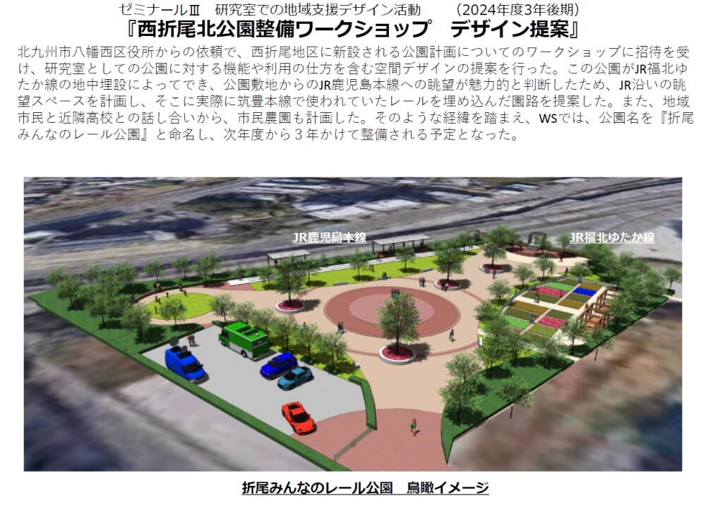 ②『令和8年4月に八幡西区折尾地区に開園予定の「折尾みんなのレール公園」(折尾愛真高校に隣接する5000㎡規模の新設公園)での空間デザイン提案プロジェクト』