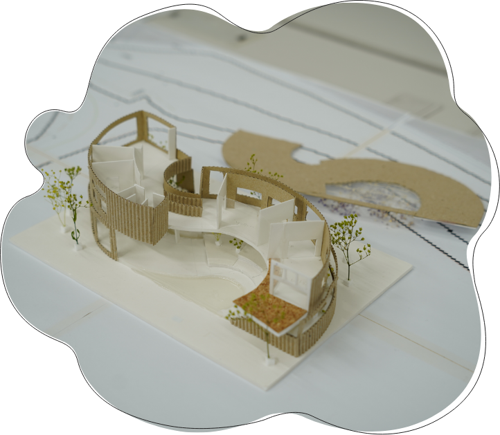 本授業は小美術館の設計を通して、都市環境への想像力を育み、創造的な空間デザインで生活や社会の質を高める力を養うことを目的としています。北九州の実際の敷地で現地調査を行い、地域への関心を深めながら、個別指導のエスキースを通して学生と真剣に向き合います。学生は自分の作品を大切にし、学びを今後の人生に活かしてもらいたいと思います。