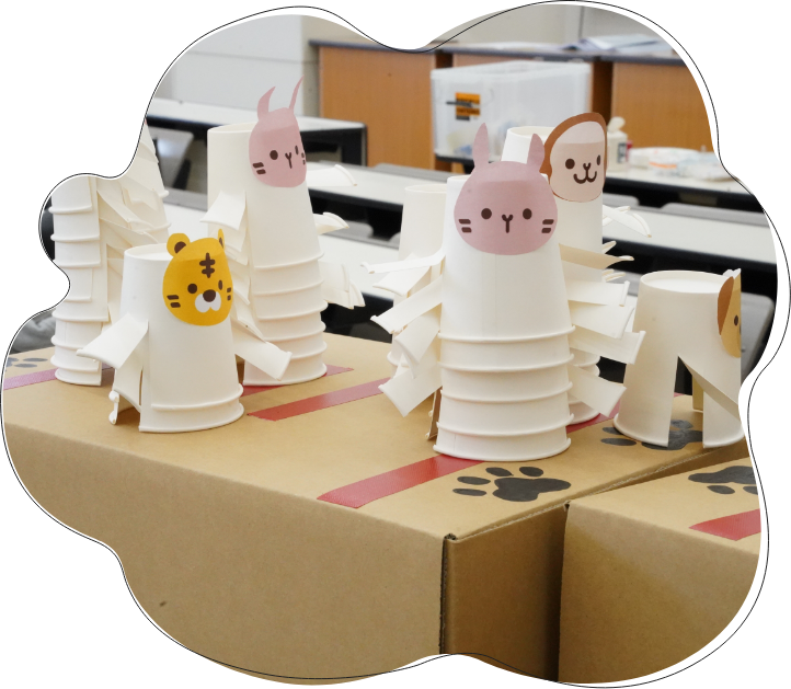 図工など自分で何かをつくることが大好きなのでこの授業を受講しました。子どもたちに喜んでもらえるものを考えることは少し難しいですが、同じグループの仲間たちと話し合いながらの工作はとても楽しいです。将来は幼稚園教諭になりたいと思っています。